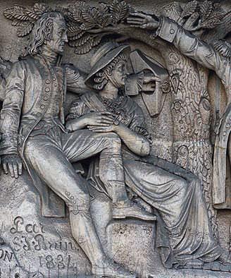 Singularité de leur époque : toutes deux emprisonnées sous la Terreur, Mme Roland, une des grandes figures de la Révolution issue de la bourgeoisie, fut guillotinée, Mme de Beauharnais, l’aristocrate, survécut et devint l’impératrice Joséphine. Elles se rencontrent “pour l'éternité”, seules femmes figurant sur l'Arc de Triomphe de l’Etoile, monument à la gloire des armées françaises, dont la construction fut décidée par Napoléon mais dont la décoration fut définie par Louis-Philippe.